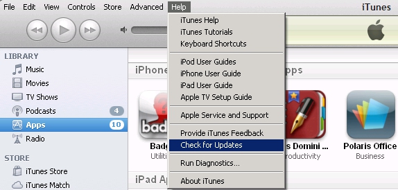 Ngoài cách cập nhật qua mạng, bạn cũng có thể kiểm tra bản cập nhật iOS 6 từ máy tính nhưng lưu ý là máy tính của bạn cần phải cài phiên bản iTunes mới nhất (v10.7). Cách thực hiện là mở iTunes, vào mục Help, chọn tiếp mục Check for Updates.