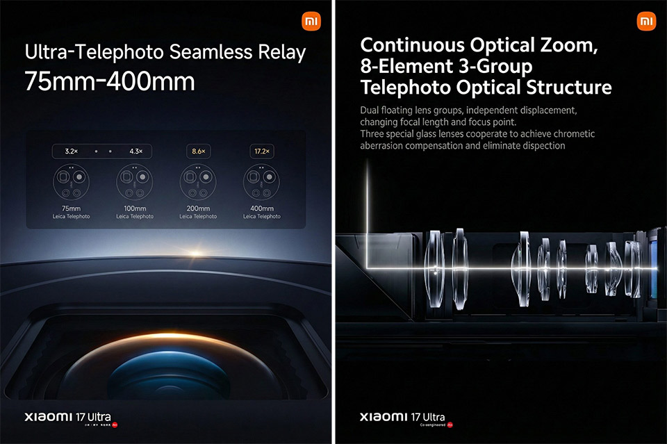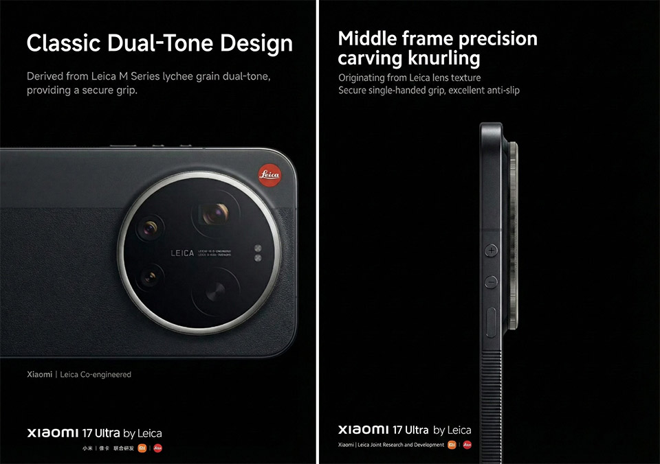 Bên cạnh phiên bản tiêu chuẩn, Xiaomi cũng ra mắt phiên bản đặc biệt được gọi là “Leitzphone by Xiaomi” trên toàn cầu, trong khi tại Trung Quốc, nó được gọi là “Xiaomi 17 Ultra Leica Edition”. Thiết kế phiên bản đặc biệt này nổi bật với logo Leica màu đủ, vòng zoom (điều chỉnh cơ cho phép người dùng điều chỉnh tiêu cự, độ phơi sáng và cân bằng trắng) và các đường vân ở khung giữa lấy cảm hứng từ nhiếp ảnh.