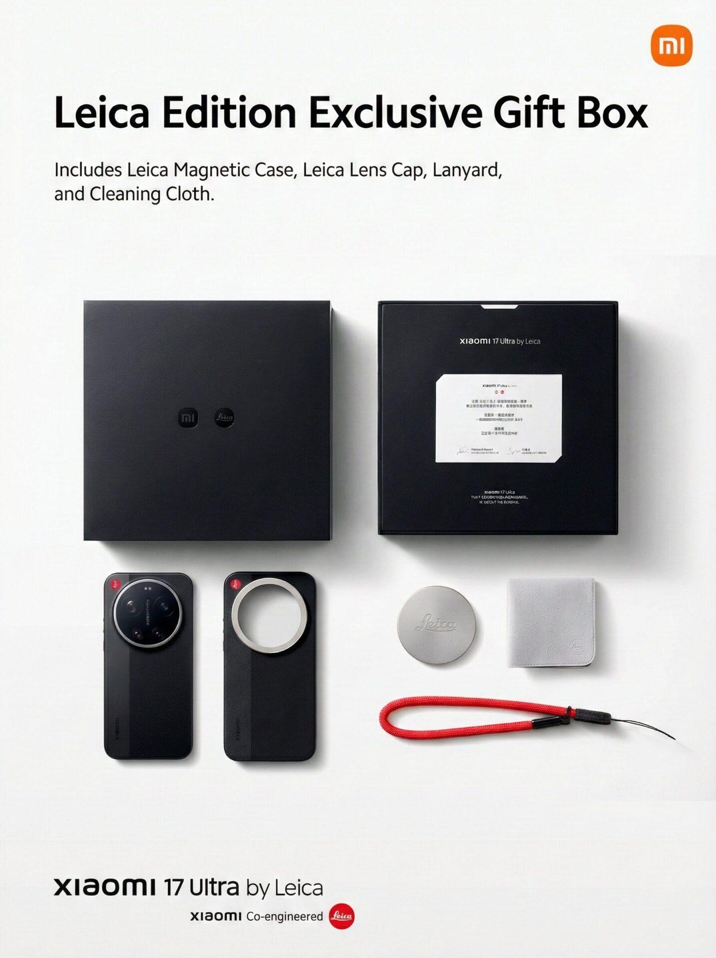Tính năng độc quyền của phiên bản Xiami 17 Ultra Leica Edition: Phiên bản Leitzphone đi kèm hộp quà gồm ốp lưng từ tính, nắp ống kính và dây đeo. Phiên bản này còn được trang bị tính năng “Leica Moment”, mang đến trải nghiệm nhiếp ảnh retro với chất lượng hình ảnh của Leica M9 và M3.