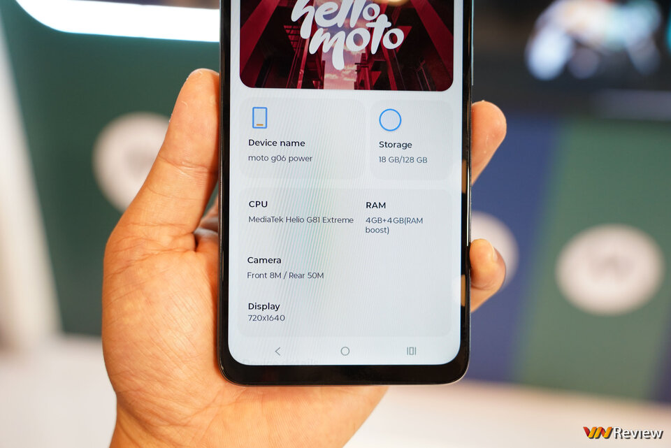 Đây là sản phẩm có mức giá thấp nhất, được định vị rõ ràng cho những người dùng cần một thiết bị có thời lượng pin vượt trội. Điểm nhấn lớn nhất của G06 Power là viên pin dung lượng 7.000 mAh. Về thiết kế, máy có mặt lưng họa tiết phay xước, khung viền vát phẳng và cảm biến vân tay tích hợp vào nút nguồn. Một chi tiết đáng chú ý trong phân khúc này là thiết bị có tiêu chuẩn kháng nước IP64.