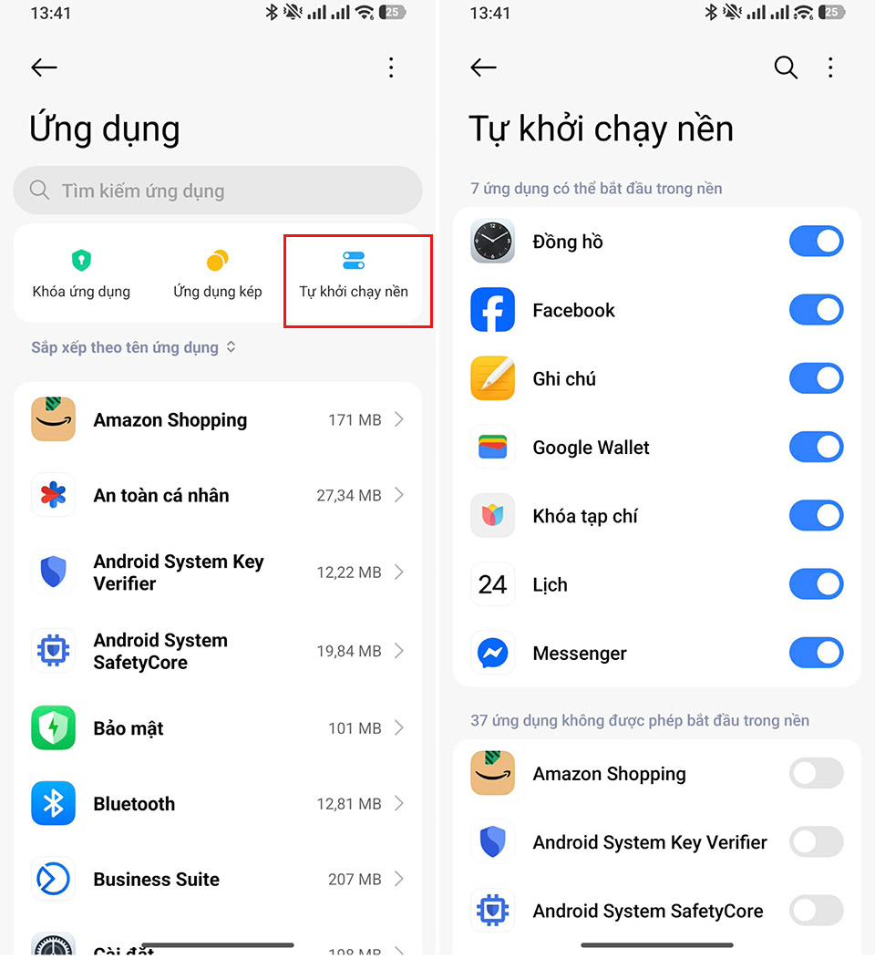 Cách tốt nhất là chọn lọc những ứng dụng thực sự cần được phép chạy trong nền. Ví dụ, các ứng dụng như Facebook và Messenger có thể cần quyền tự khởi động để cung cấp thông báo kịp thời, trong khi các trò chơi, ứng dụng mua sắm hoặc các công cụ hệ thống ít dùng có lẽ không cần đặc quyền này.