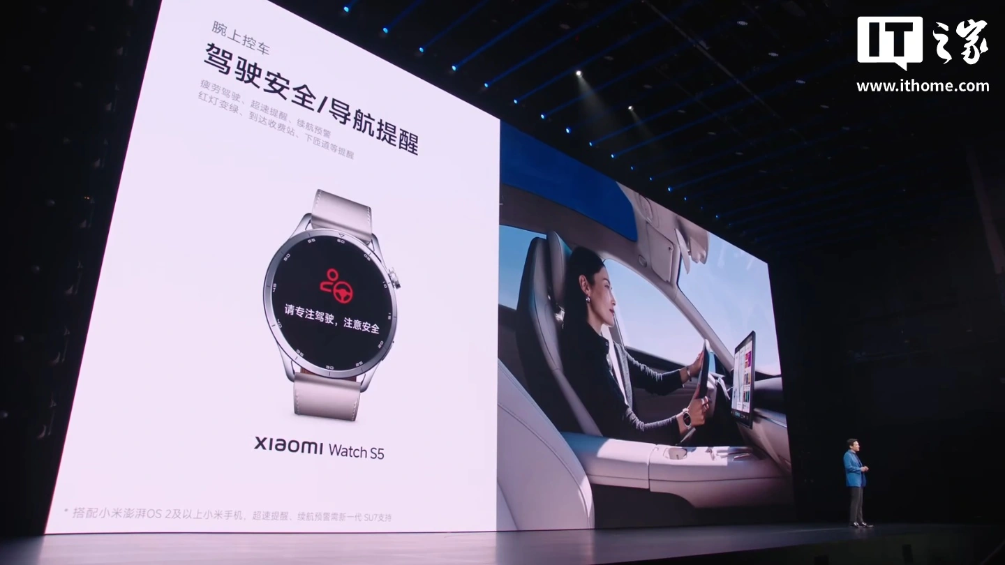 Watch S5 cung cấp thời gian sử dụng lên đến 21 ngày. Và giống như hầu hết các thiết bị gần đây của Xiaomi, Watch S5 được tích hợp chặt chẽ vào hệ sinh thái rộng lớn hơn của hãng. Đồng hồ này cũng hoạt động với ứng dụng Xiaomi Auto, bổ sung các chức năng nhắc nhở chủ động: nhắc nhở rung mạnh để đảm bảo an toàn khi lái xe trong các tình huống như lái xe mệt mỏi và chạy quá tốc độ; nhắc nhở lộ trình điều hướng để tránh bỏ sót các điểm như đèn giao thông và đường dốc (ứng dụng Xiaomi Auto trên đồng hồ, hỗ trợ thế hệ SU7 và YU7 mới).