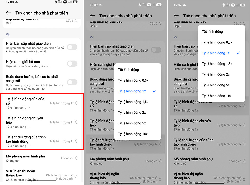 Để sửa đổi cài đặt hoạt ảnh: Truy cập Cài đặt > Cài đặt bổ sung > Tùy chọn nhà phát triển. Tìm Tỷ lệ hoạt ảnh cửa sổ, Tỷ lệ hoạt ảnh chuyển tiếp và Tỷ lệ thời lượng của trình tạo hình động. Đặt tất cả các giá trị thành 0,5x hoặc tắt chúng để chạy ở hiệu suất tối đa. Nếu Tùy chọn nhà phát triển không hiển thị, hãy kích hoạt bằng cách chạm vào Cài đặt > Giới thiệu về điện thoại > nhấn 7 lần vào Phiên bản HyperOS.