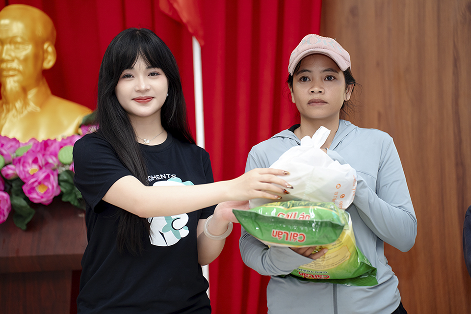 Các nhà sáng tạo và các gia tộc của Bigo Live Vietnam đã trao tặng nhu yếu phẩm, dụng cụ học tập, chung tay dọn dẹp, cải thiện môi trường sống, và cùng các chị em chia sẻ những bữa ăn ấm áp, tạo nên một ngày tràn đầy tình thân, sự biết ơn và kết nối. Bigo Live đã trao tặng tổng cộng 300 phần quà thiết yếu, bao gồm dầu ăn đóng chai, bột ngọt, bột nêm, sữa hộp cùng 1,5 tấn gạo.