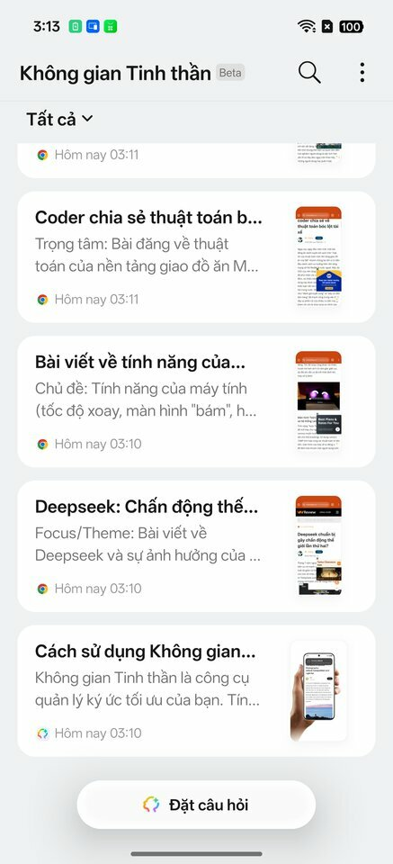 Tính năng Không Gian Tinh Thần - AI Mind Space - giúp nhanh chóng lưu lại mọi điều và dễ dàng truy cập, tìm kiếm