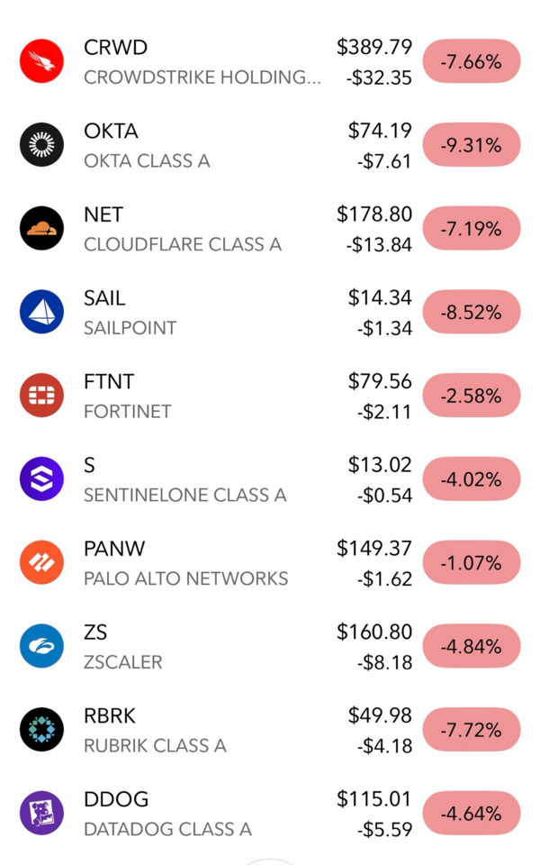 Phản ứng của thị trường tài chính diễn ra tàn khốc và tức thì ngay trong phiên giao dịch sau thông báo. Bảng điện tử của nhóm cổ phiếu an ninh mạng đồng loạt chìm sâu trong sắc đỏ. Okta dẫn đầu đà giảm khi bốc hơi tới 9,2% giá trị, theo sau là hai ông lớn CrowdStrike và Cloudflare cùng ghi nhận mức sụt giảm 8%, trong khi Zscaler cũng mất đi 5,5% thị giá. Sự hoảng loạn lan rộng khiến chứng chỉ quỹ ETF Global X Cybersecurity lao dốc gần 5%, đóng cửa ở mức thấp nhất kể từ tháng 11 năm 2023.
