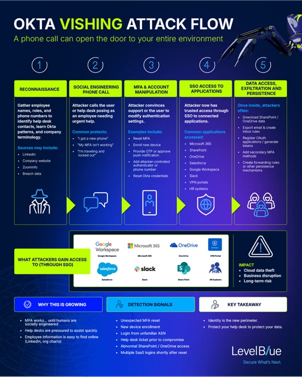 Chuỗi tấn công lừa đảo qua điện thoại Okta (Nguồn: LevelBlue).