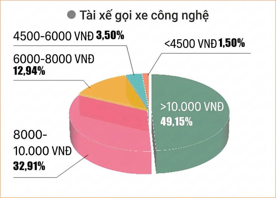 Trong đó, các tài xế có thu nhập hàng tháng từ 8000-10.000 nhân dân tệ là 32,91% và tài xế thu nhập trên 10.000 nhân dân tệ chiếm 49,15%.