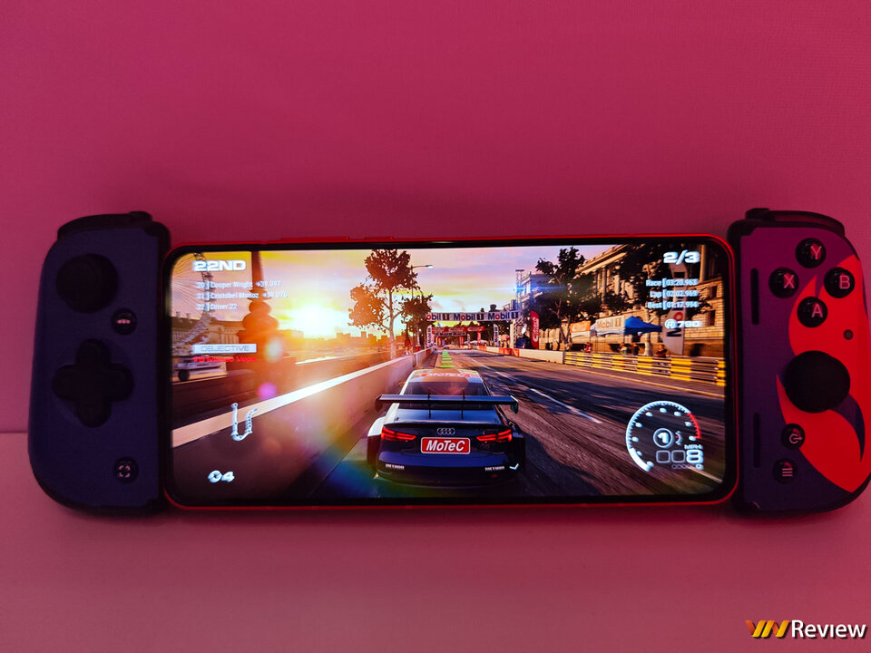 Chiếc điện thoại mình test còn được lắp sẵn bộ tay cầm chuyên dụng để chơi game nên không khác gì một cỗ máy chơi game di động như Steam Deck, Rog Ally, Nintendo Switch, càng làm cho trải nghiệm test game thêm phần hấp dẫn.