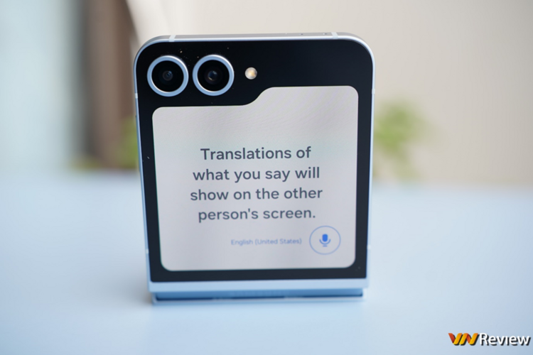 Z Flip 6 tận dụng luôn màn hình ngoài để hiển thị nội dung được dịch rất trực quan, tiện lợi khi bạn đi du lịch hay trò chuyện với người nước ngoài