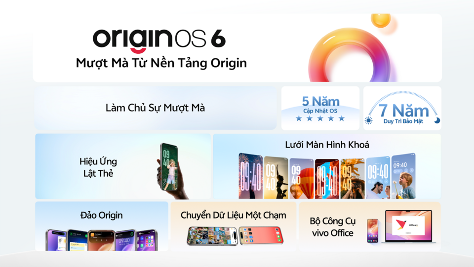 Cùng với việc ra mắt vivo X300 Series, OriginOS cũng chính thức được giới thiệu đến thị trường toàn cầu. Được xây dựng trên nền tảng các công nghệ cốt lõi như Công nghệ tính toán siêu lõi, Hợp nhất bộ nhớ và Công nghệ Kết xuất Kép, phiên bản OriginOS 6 hoàn toàn mới hứa hẹn mang đến trải nghiệm điện thoại thông minh đột phá cho người dùng. Hệ điều hành này nổi bật với sự kết hợp hài hòa giữa tính mượt mà bền bỉ, thiết kế lấy cảm hứng từ thiên nhiên và khả năng trí tuệ nhân tạo mở rộng.